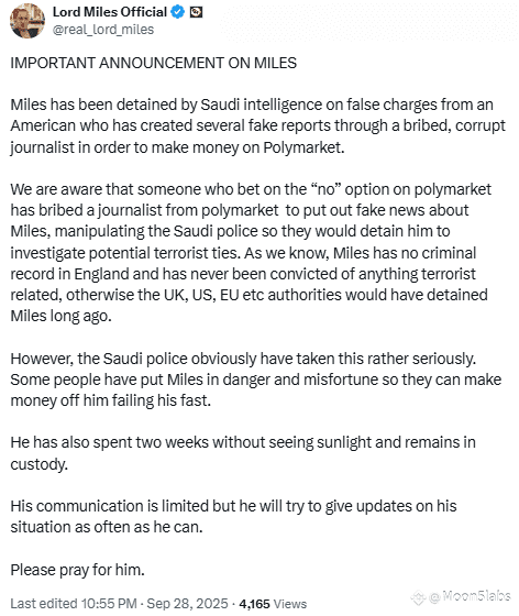 Lord Miles’s representatives argue that others also exploited the situation. They allege that some participants filed false reports that led to his detention, allowing them to profit massively from bets on his “failure.” According to them, some traders made “high six-figure sums.”