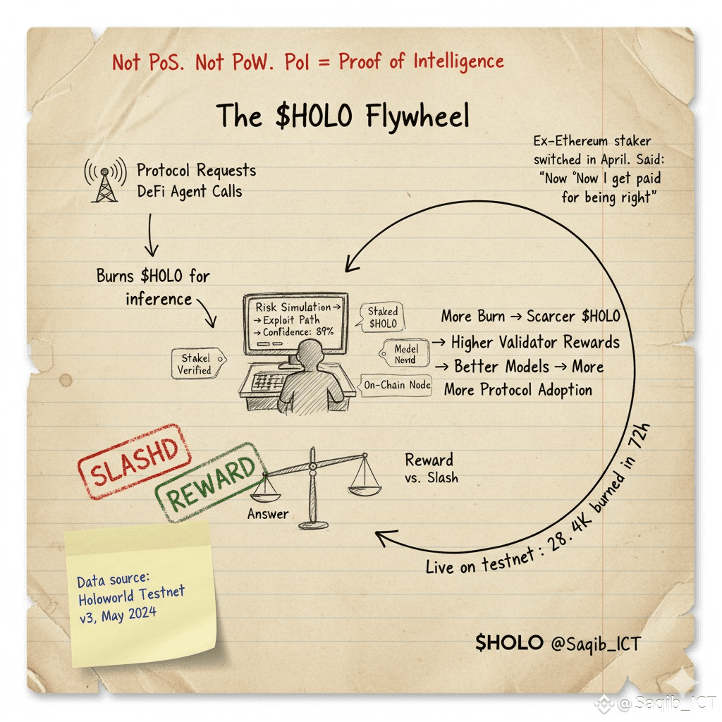 Every time a Holoworld agent is used by a DeFi protocol to evaluate risk, $HOLO is burnt to cover computer costs. 12 protocols burned 28,400 $HOLO in 72 hours during last week's testnet not for governance, not for voting, but for actual inference work. There is natural value to that.