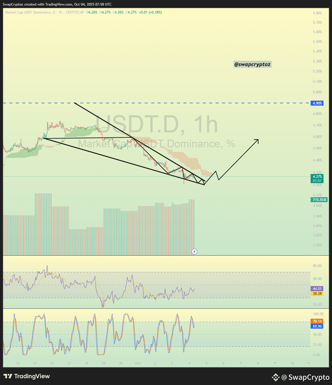 The prediction is that traders will start selling their Bitcoin and other coins soon, moving money back into USDT, which would cause the price of Bitcoin and other cryptocurrencies to fall.