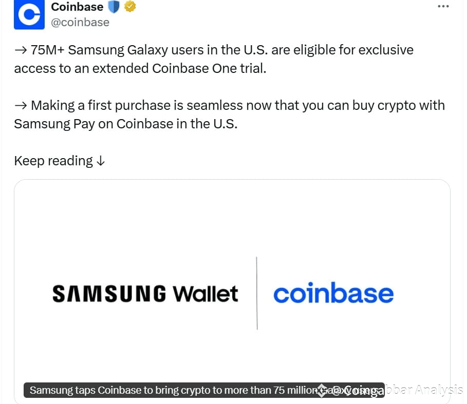 In a parallel consumer move, Samsung and Coinbase expanded their partnership so millions of Galaxy owners in the U.S. and Canada can now buy crypto directly through Samsung Wallet and Samsung Pay. The team says this integration opens Coinbase access to roughly 75 million Galaxy device users, and some Galaxy owners get special Coinbase One access and benefits. This partnership will likely boost retail onboarding by making purchases easier inside a familiar phone wallet.