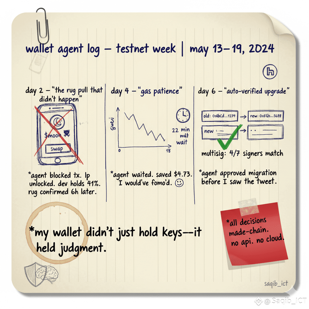 6️⃣Day 6: A DeFi protocol I’m in announced an emergency upgrade. The agent auto-checked the new contract against known exploit patterns, verified the multisig signers, and approved the migration before I even saw the tweet.