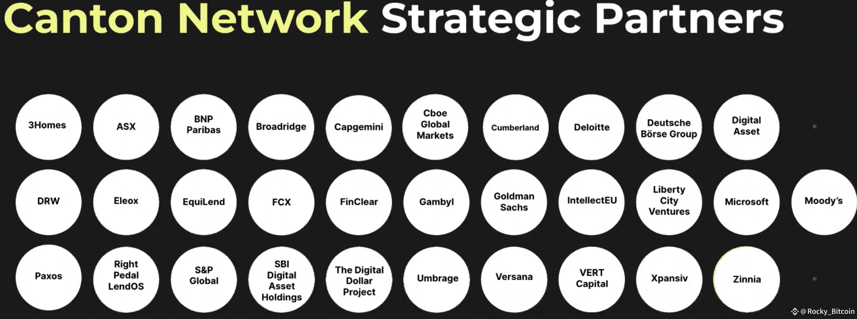 而 #Canton 改变了这个局面,这是一个由高盛、法国巴黎银行、汇丰、纽约梅隆银行、DTCC、Tradeweb、美银、Citadel、香港交易所(Synapse) 等机构共同参与搭建的金融网络。他们不是“顾问”,是真正在链上跑交易的参与者。这种级别,这种格局,在 #RWA 赛道实属罕见!