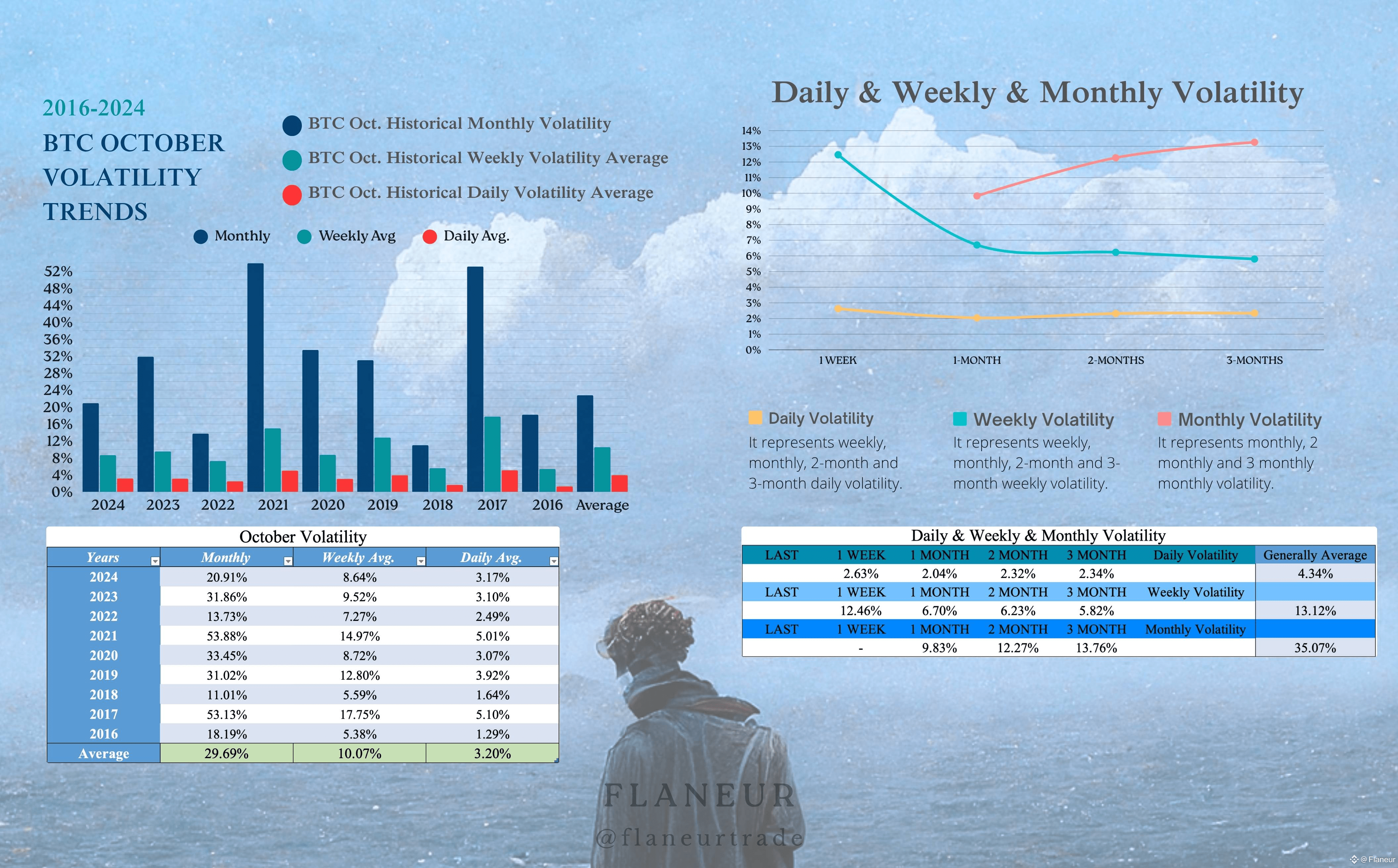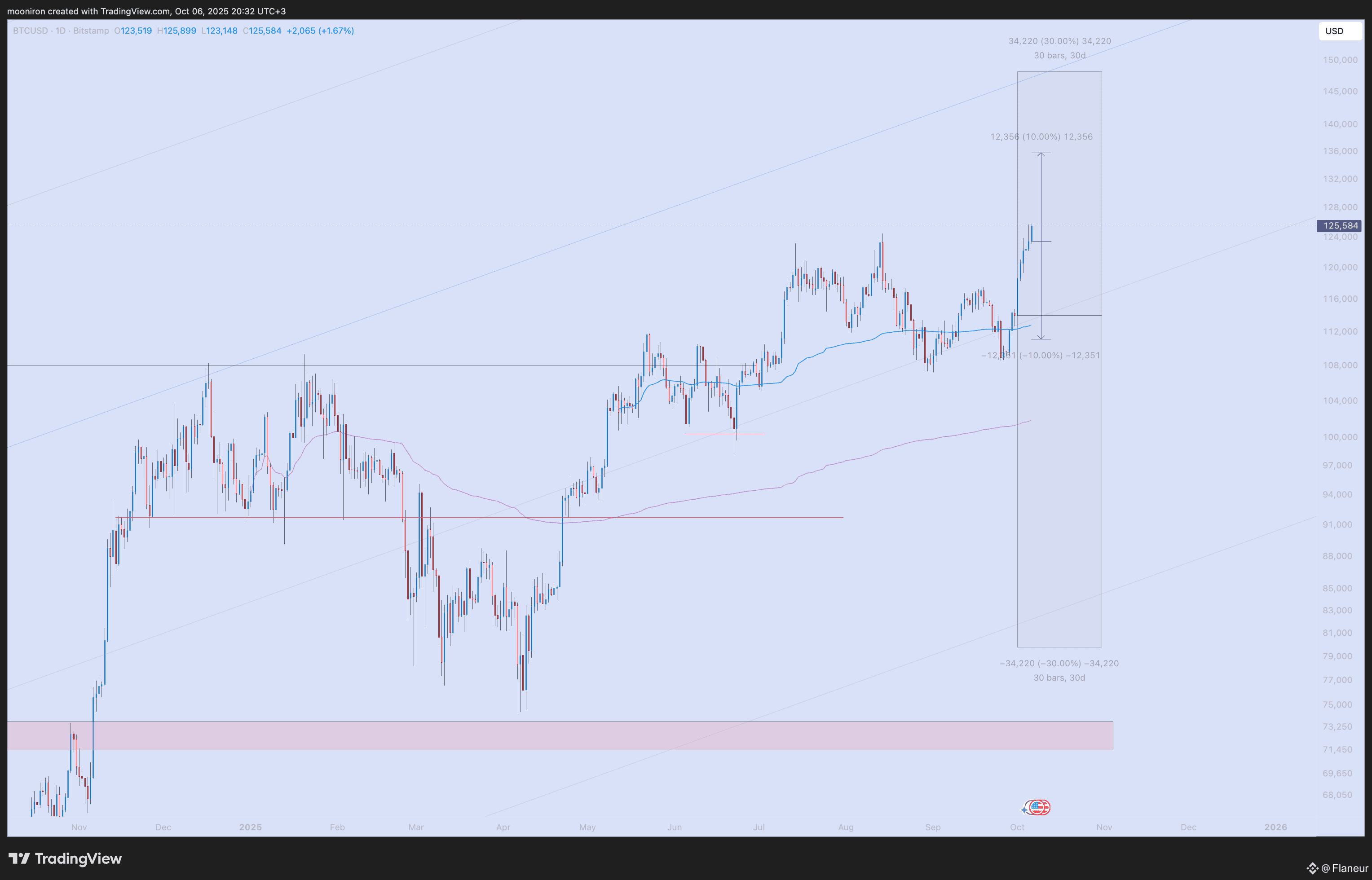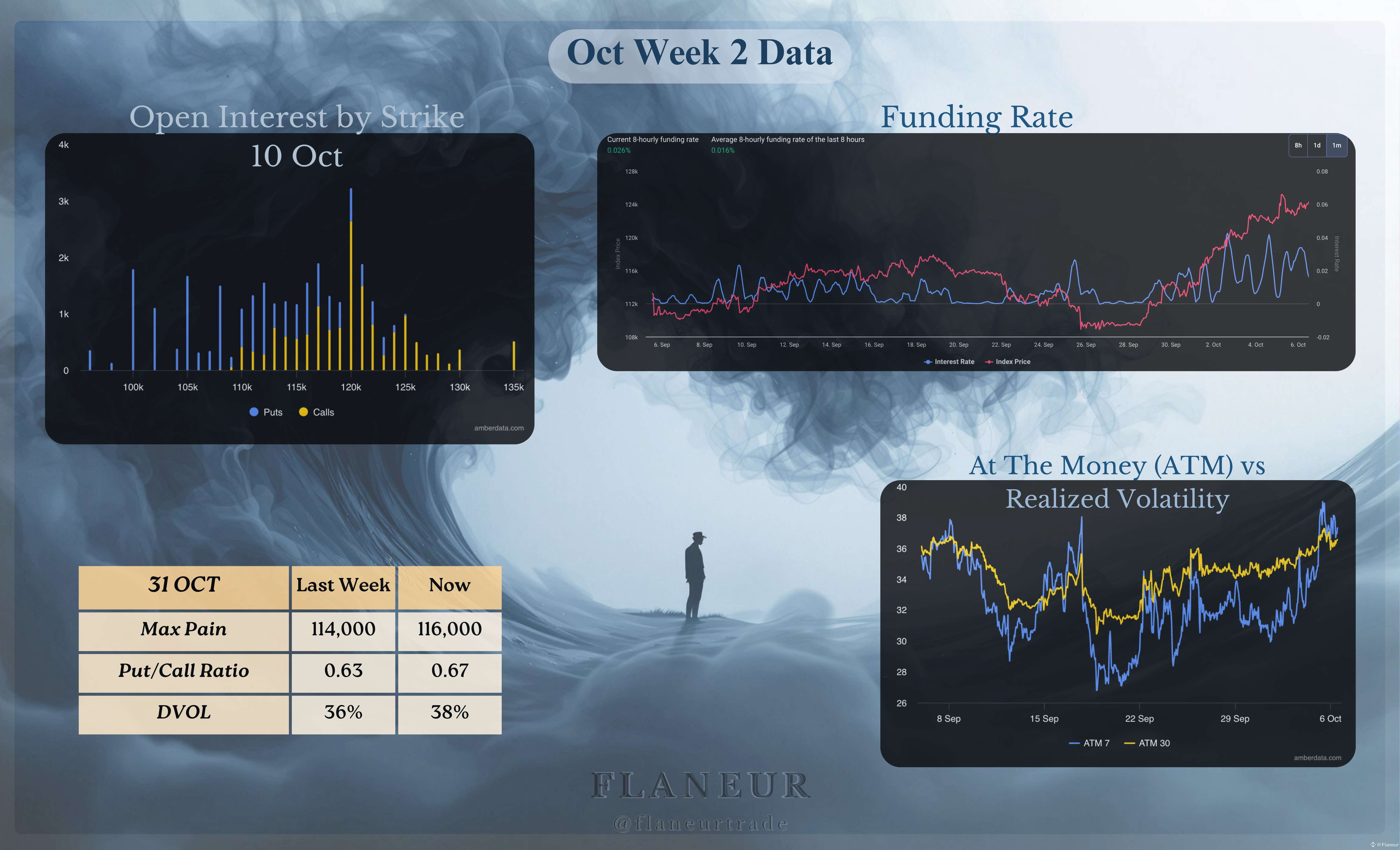 Looking at historical data for October, BTC’s monthly average volatility is 30%, and weekly average volatility is 10%. Starting from $114,000, this suggests a potential monthly range of $80,000 to $148,000. With a weekly open at $123,000, the implied weekly range is $111,000 to $136,000.