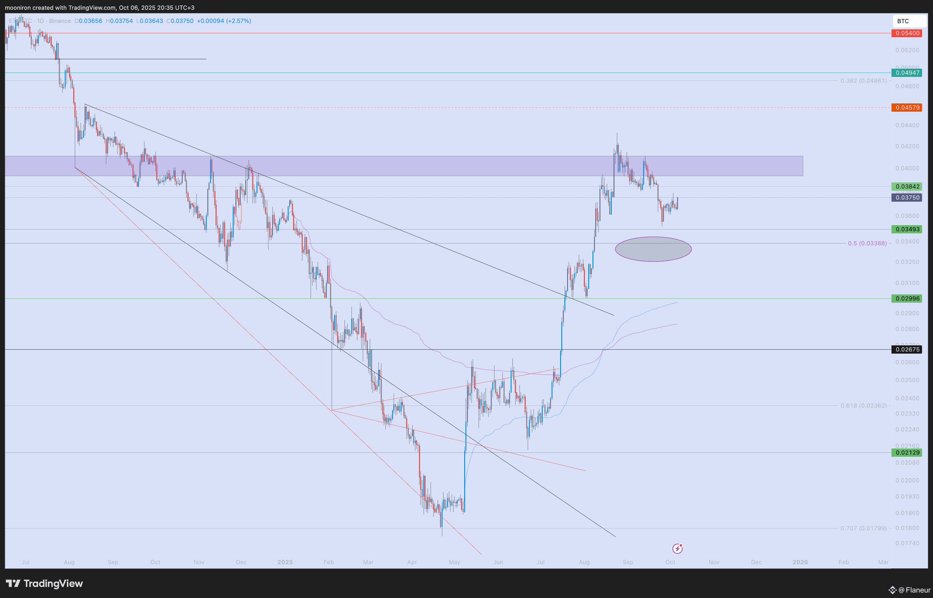 ETH’s underperformance against BTC in September pulled the ratio down to 0.033. It has since recovered to 0.037, but now faces a key resistance zone. The 0.0375–0.0382 range could act as a strong selling area. I also see 0.0396–0.0400 as solid resistance. A break above 0.0400 from current levels would signal a new bullish wave.
