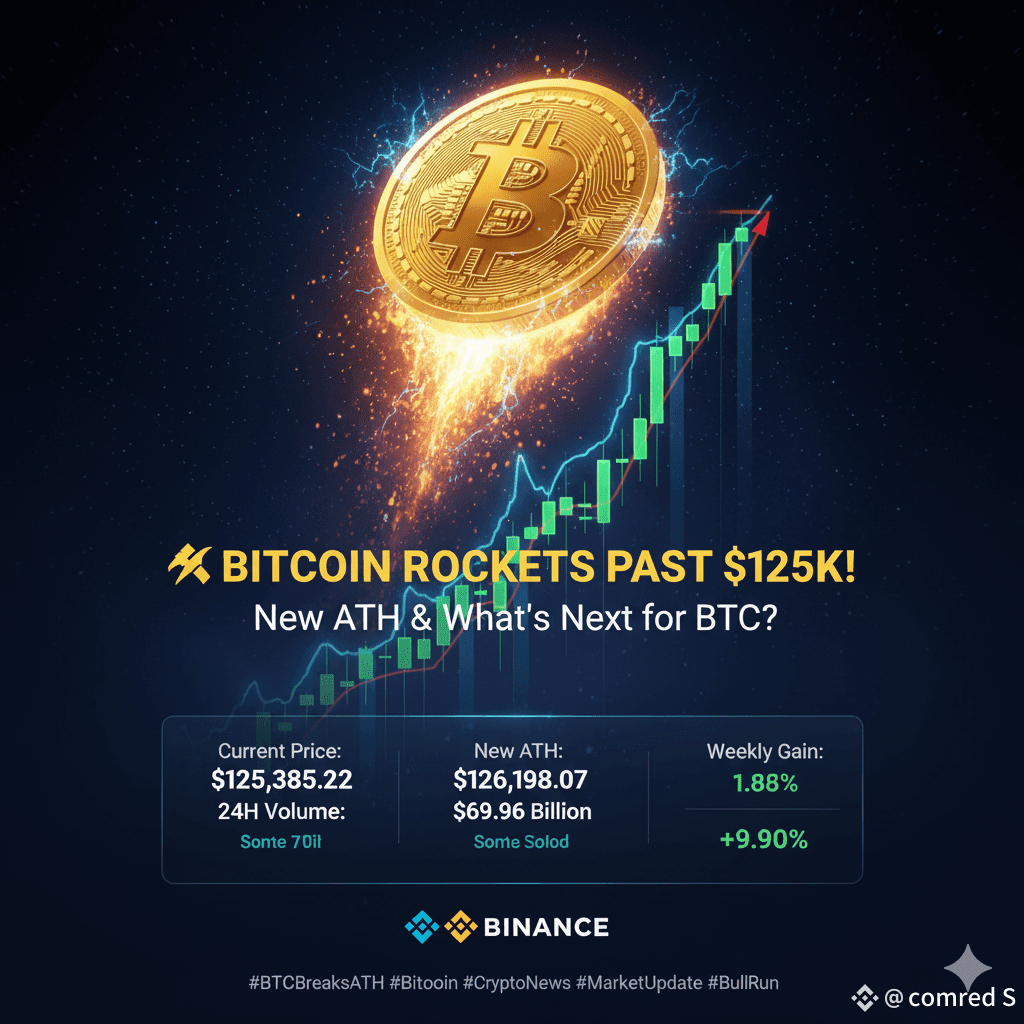 Bitcoin $BTC is making history AGAIN, smashing past the $125,000 mark and setting a NEW ALL-TIME HIGH of $126,198.07! 🤯 The crypto king is on an incredible run, showing no signs of slowing down.