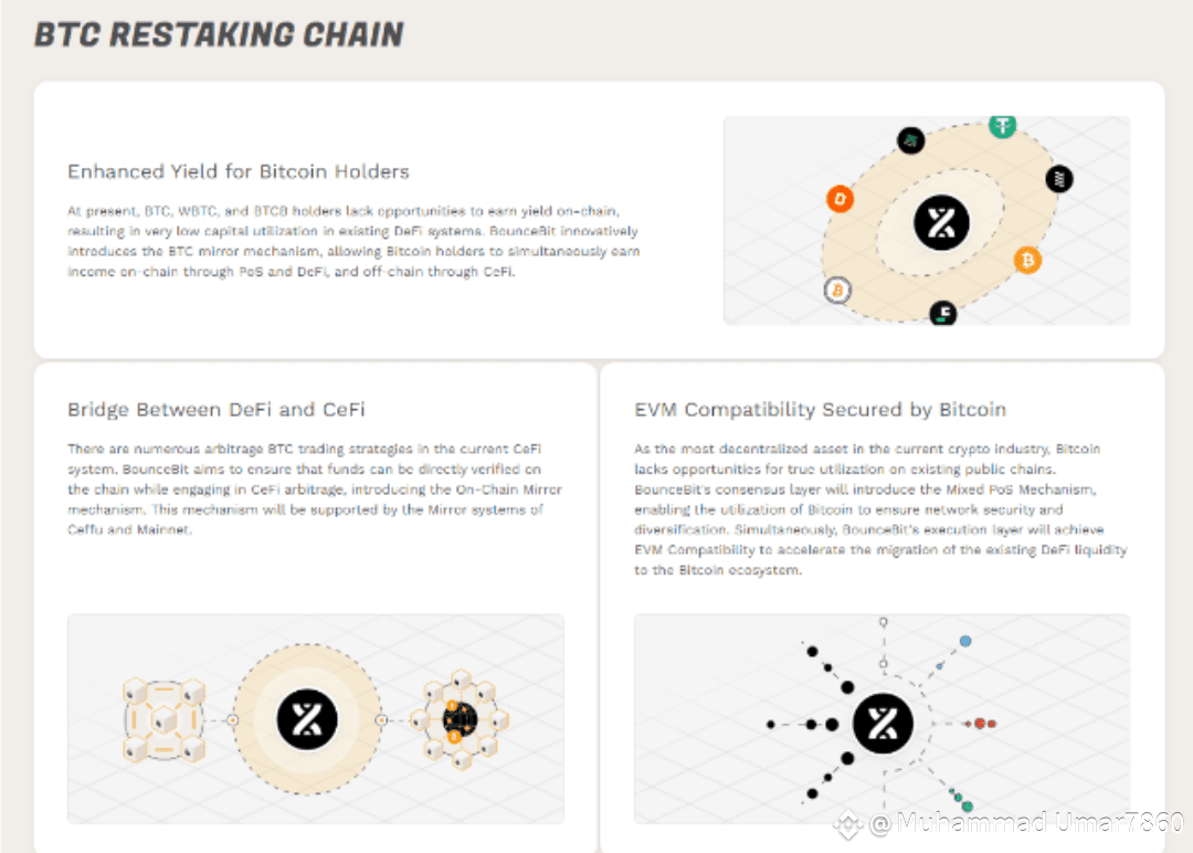 At its core, BounceBit is a Layer 1 blockchain built to enable Bitcoin restaking, where Bitcoin holders can earn yield across multiple sources without giving up ownership of their Bitcoin. This means that users can earn rewards while still holding their BTC, a feature that has long been missing in the DeFi space. The magic behind BounceBit is its dual-token staking system, which relies on Bitcoin (BTC) and BounceBit's native token (BB) to secure the network and provide liquidity.