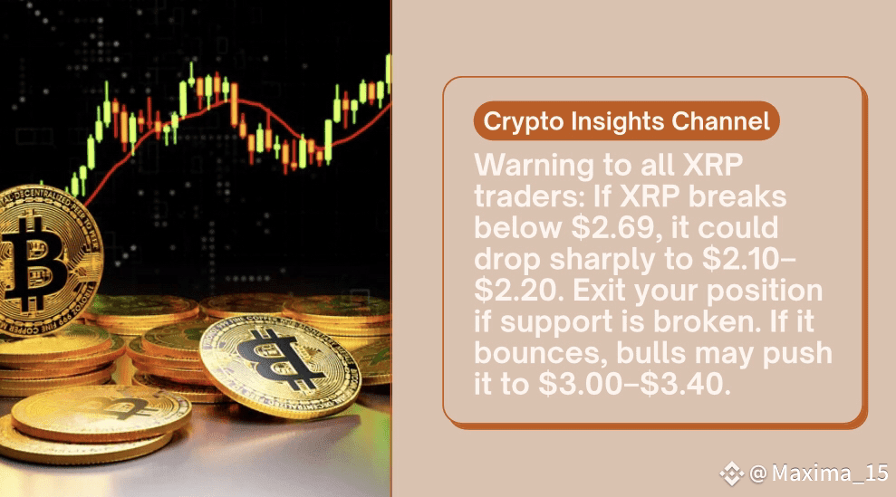 If $XRP breaks below the key support level of $2.69, it could trigger a sharp drop — potentially falling to the $2.10–$2.20 zone.