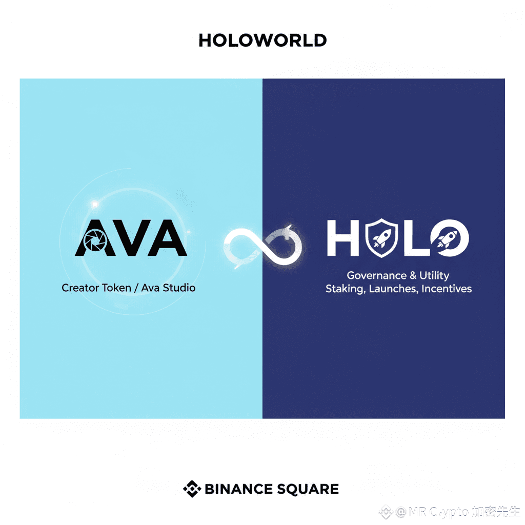 The Holoworld dual-token system, consisting of HOLO and AVA, is designed to power a balanced and sustainable digital ecosystem that connects governance, creator incentives, and user participation. Together, these two tokens form a dynamic flywheel effect that fuels both long-term ecosystem growth and short-term content-driven engagement.