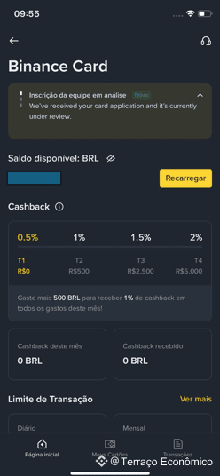 Você pode verificar o status do seu pedido na aba do Binance Card dentro do app. Lá, aparecerá a mensagem: “Inscrição da equipe em análise”, indicando que o processo ainda está em andamento.