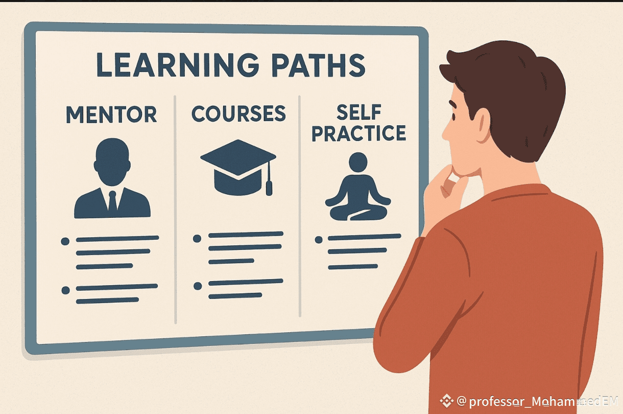 وإن كنت تتعلم بطرح الأسئلة والتفاعل، فابحث عن مدرّب أو مجموعة تداول صغيرة.
