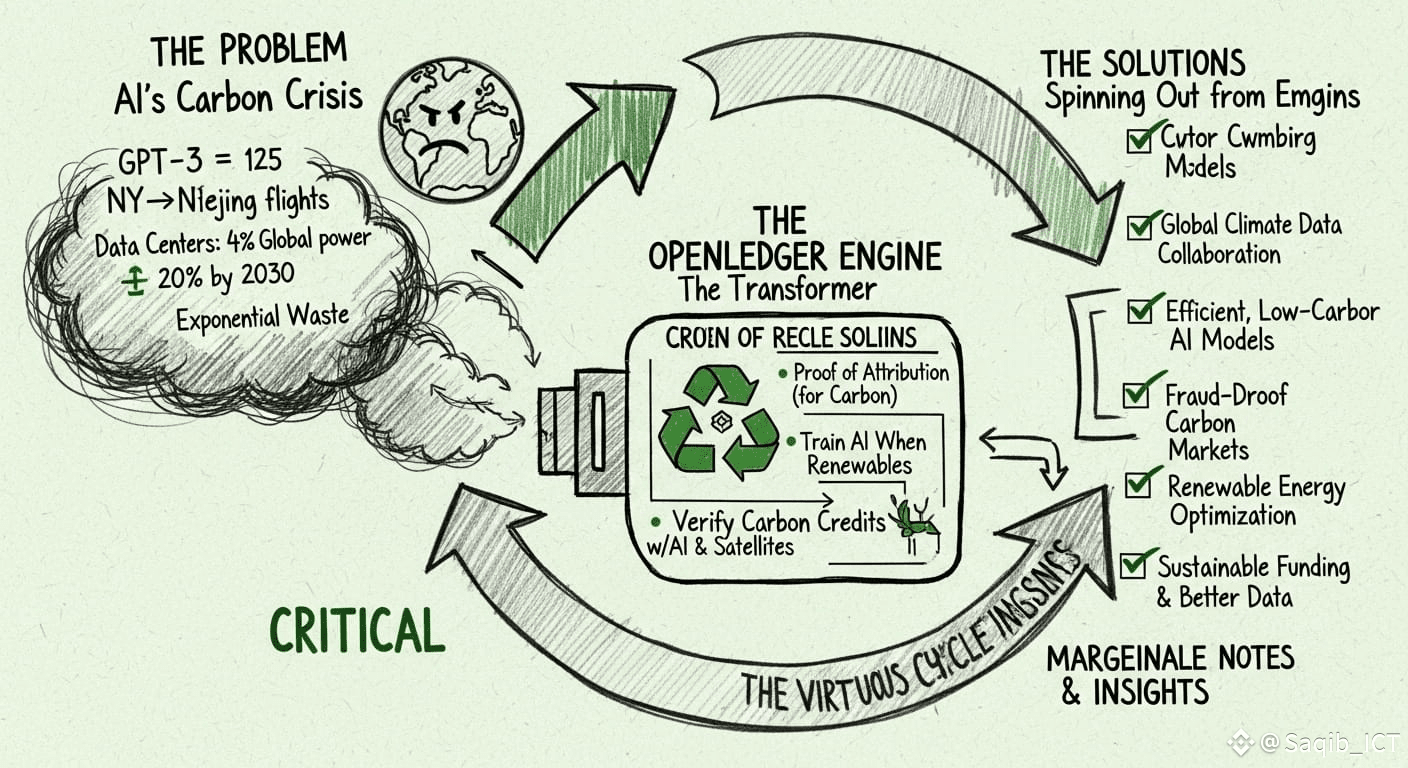 The artificial intelligence revolution carries a dark secret that Silicon Valley prefers not to discuss: AI training consumes more energy than entire countries. Training GPT-3 generated as much carbon dioxide as 125 round-trip flights between New York and Beijing. As AI models grow exponentially larger and more sophisticated, their environmental footprint threatens to offset decades of progress in renewable energy adoption. Yet buried within this crisis lies an unprecedented opportunity that OpenLedger uniquely exploits—transforming AI from an environmental liability into the world's most powerful engine for climate action.
