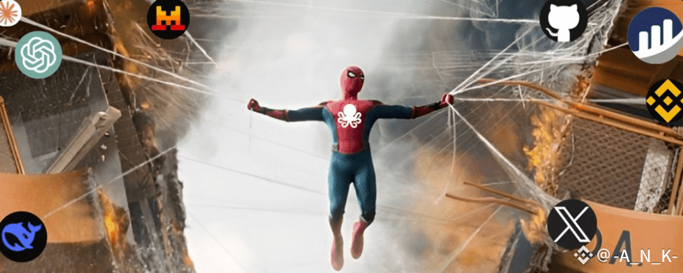 If you think about what @OpenLedger has been doing for a while now, it’s basically that moment where Tom Holland is holding a splitting boat together—but instead of webs, it’s AI models on one side and decentralized tools on the other. On one end, you have all these specialized AI models, some built for DeFi, others for compliance, trading, or on-chain analytics, and on the other, you have the chaos of decentralized systems like $ETH , #Etherscan , #Binance , and real-time off-chain data.