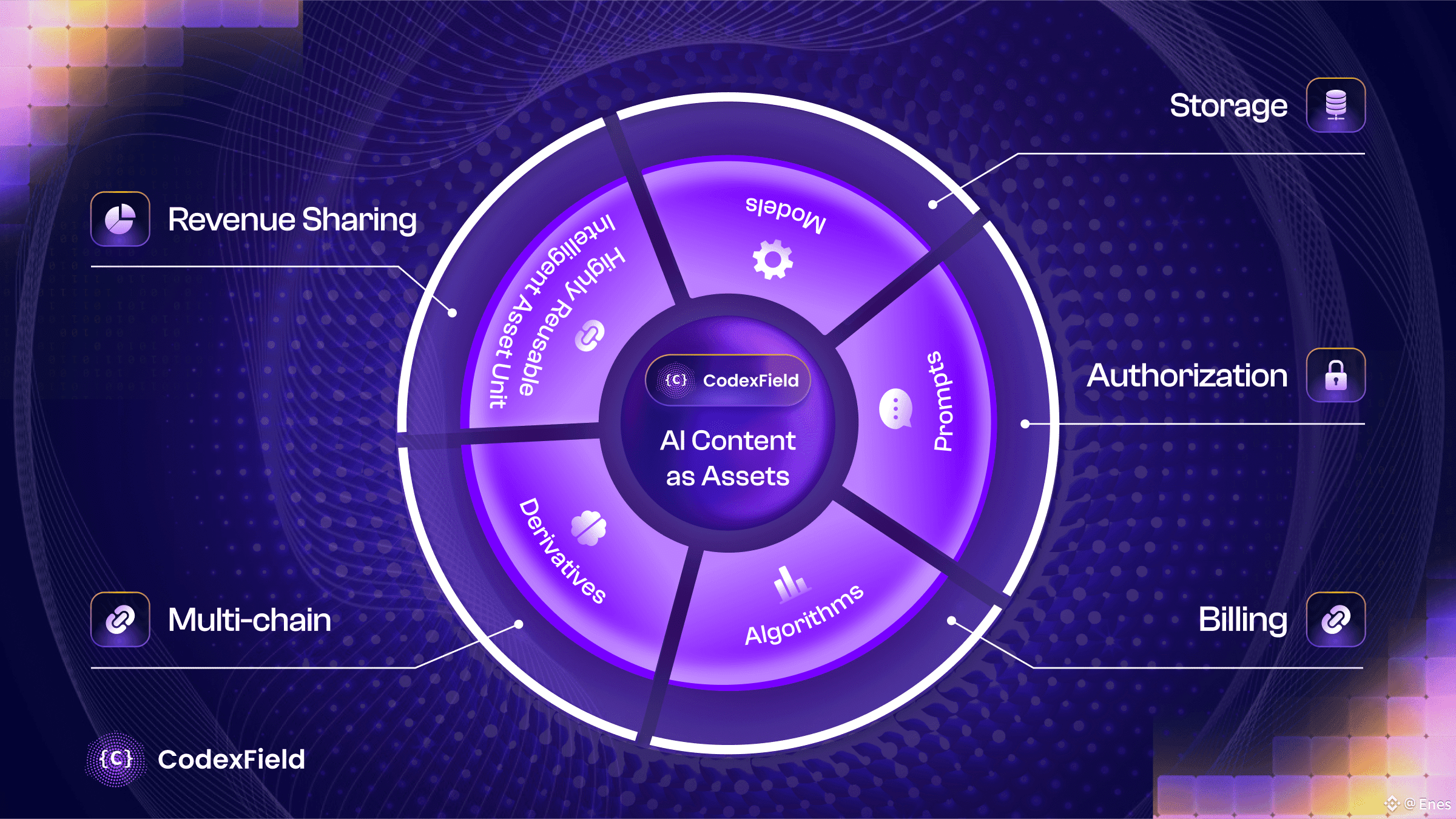 In this phase of exponential growth in artificial intelligence and content production,creation and models have long transcended the category of mere works, becoming a new generation of digital production factors. In fact, with the explosive growth of global information, the Web2 world still lacks pathways for the confirmation,measurement, and monetization of these content elements at the value level.Creative acts often fail to form sustainable economic loops. The emergence of CodexField aims precisely to solve this dilemma.
