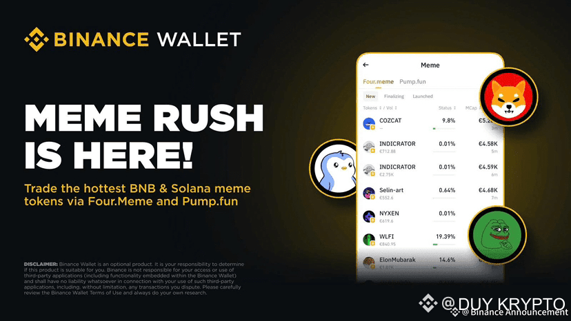 Meme Rush – Binance Wallet Exclusive là chương trình mới của Binance Wallet (Keyless), cho phép người dùng sở hữu sớm các meme token tiềm năng — trước khi chúng được niêm yết công khai.