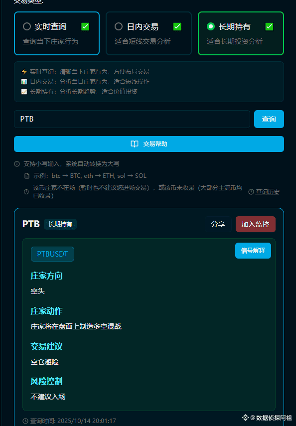 想提前预判大逃杀信号?链上监控工具已捕捉到PTB多空混战预警,实时提示撤退时机!👇