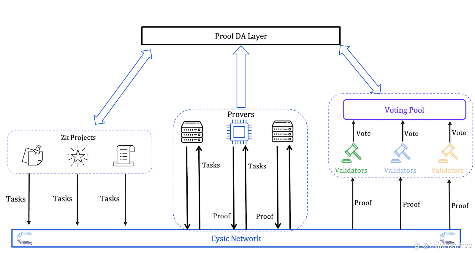 作为面向全行业的 ZK Proof Layer,Cysic 提供高性能、低成本的证明生成与验证服务。网络通过 去中心化 Prover 网络 与 离链验证 + 聚合上链机制 提升效率,并以 PoC 模型 将算力贡献与质押权重结合,构建兼具安全性与激励性的计算治理体系。