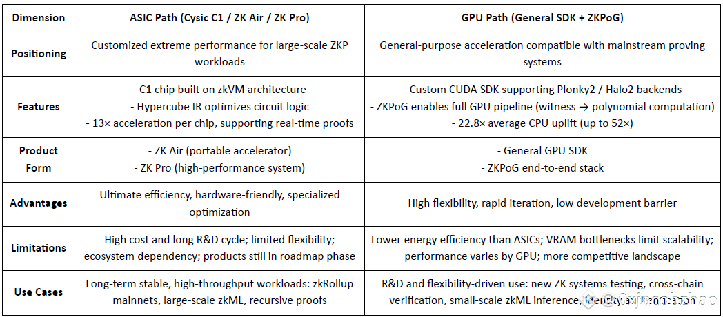 Cysic adopts a dual-track strategy — combining ASIC innovation with GPU acceleration — driving ZK from “verifiable” to “real-time usable” through a full-stack approach from custom chips to general SDKs.