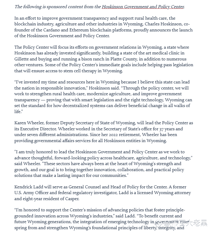 #ADA #ADAHolders #ADAAnalysis 重磅消息!ADA 创始人成立了 Hoskinson 政府与政策中心。