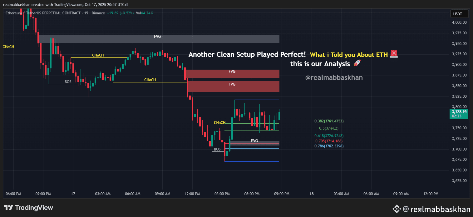 See the chart 👆 — ETH respected every BOS and ChoCH perfectly. After the break, liquidity got grabbed and price pushed clean into FVG zone. The structure is forming just like smart money theory shows… simple but powerful stuff!
