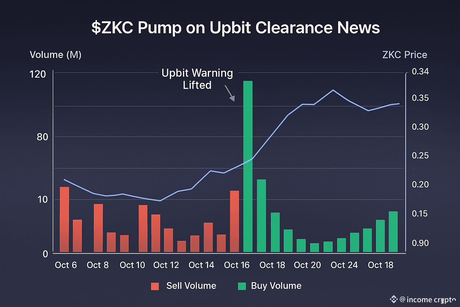 17 अक्टूबर को Upbit ने ZKC की warning हटा दी। उसी दिन ZKC 66% तक jump किया और trading volume 1,300% surge हुआ।