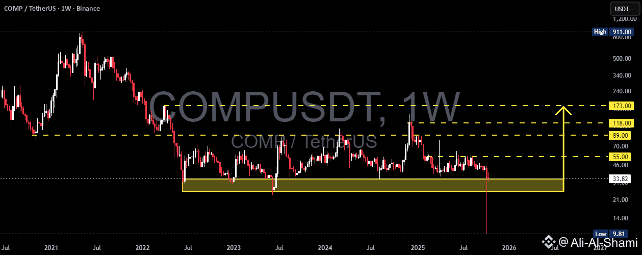 إذا أغلق COMP شمعة أسبوعية تحت 25.5 USDT، فسوف يشير إلى انهيار الهيكل طويل الأمد،