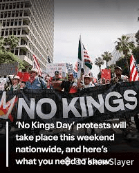 On Saturday, October 18, 2025, coordinated protests under the banner “No Kings” took place across the U.S., with demonstrators voicing opposition to what they see as authoritarian overreach by President Donald Trump and his administration.