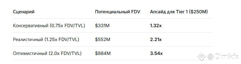 FDV: $250 – $350 млн.** Оценочная стоимость проекта. Если сравнивать с текущим TVL в ~$441 млн, то коэффициент FDV/TVL получается около 0.57x – 0.8x. Для сравнения: у Uniswap этот показатель — 1.06x, у Jupiter — 0.81x. Вывод? Оценка более чем адекватная, а в лучшем случае — привлекательная. Это не стартап с завышенной в 10 раз оценкой.