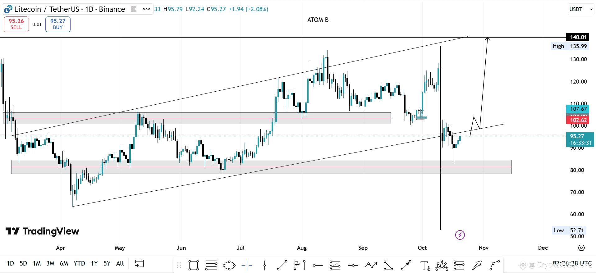 $LTC is showing renewed strength after rebounding from the $88–$90 support zone within its ascending channel. The price is now testing resistance near $102, and a breakout above this level could open the path toward $120–$140 in the coming weeks.