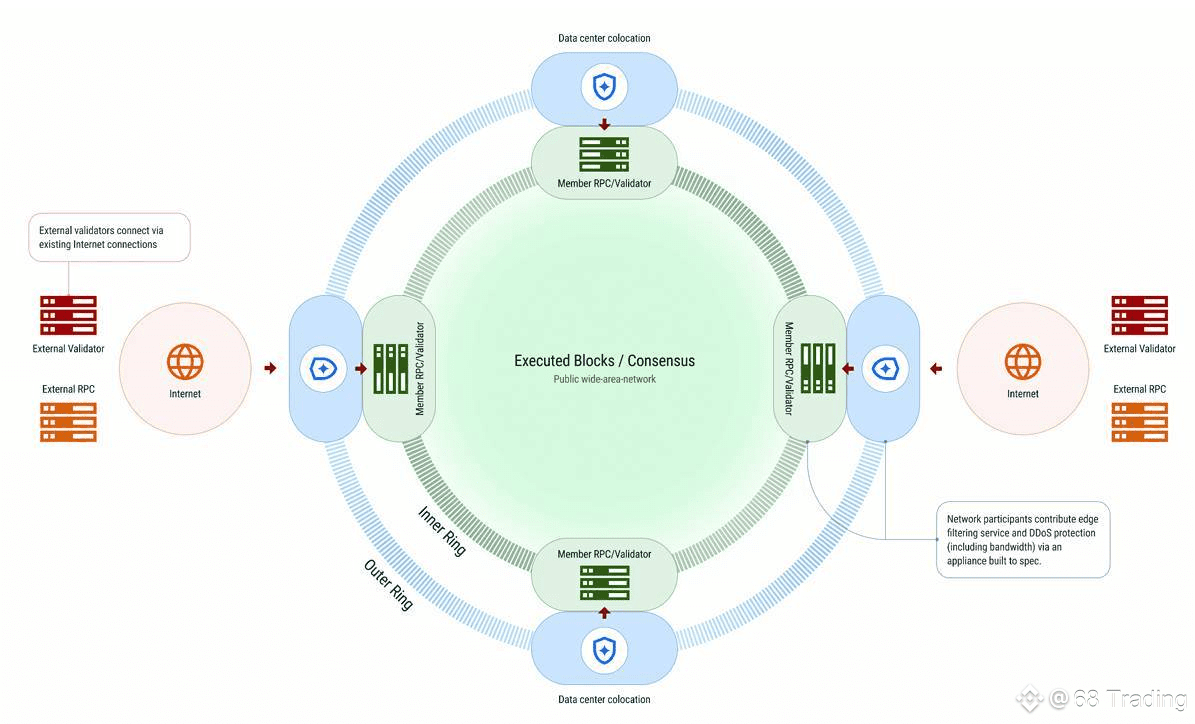 - Vòng ngoài (Outer Ring): Tính năng này sẽ kết nối với internet công cộng. Tại đây, phần cứng chuyên dụng (FPGA) thực hiện lọc lưu lượng, loại bỏ spam, xác minh giao dịch và bảo vệ hệ thống khỏi các cuộc tấn công DDoS. Điều này giúp giảm tải công việc cho các validator blockchain.