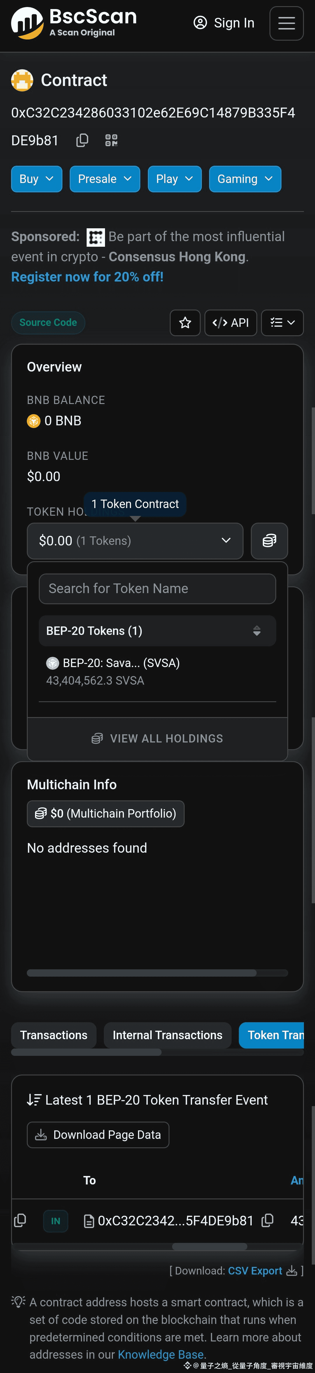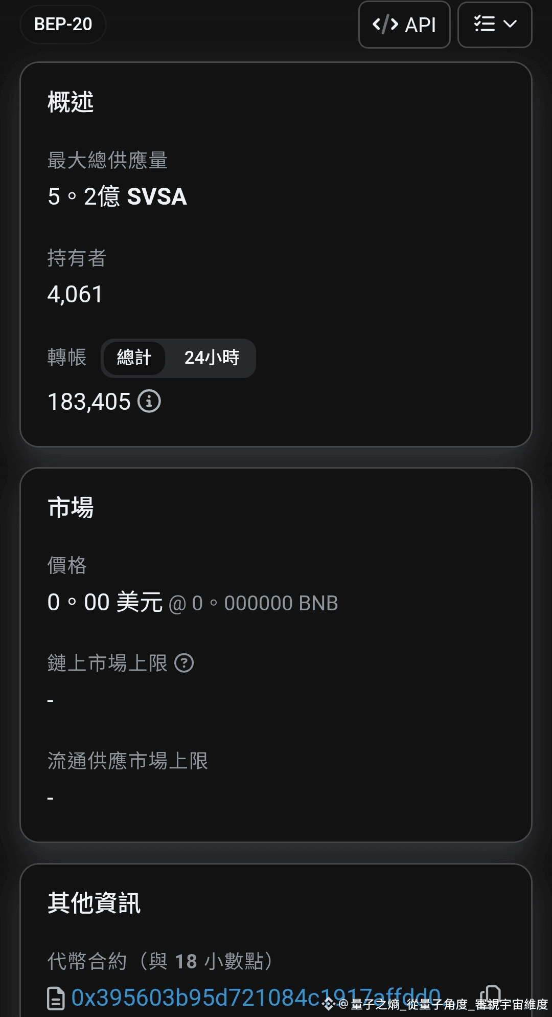 廢話不多說,先上兩張圖,圖中就是SVSA這代幣在鏈上數據的合約地址截圖