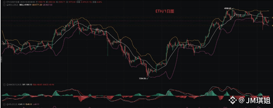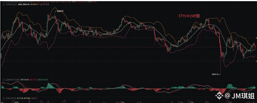 以太坊走势联动大盘,币价也是承压回调,价格再度回调至3920一线,短期上行节奏被打破,日内支撑在缓慢下移,走势回调宽幅震荡区间,
