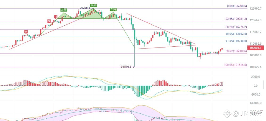 北上试仓点107000到106500,防守106000,止损500点,目标看108000到108500,破位看109000到110000