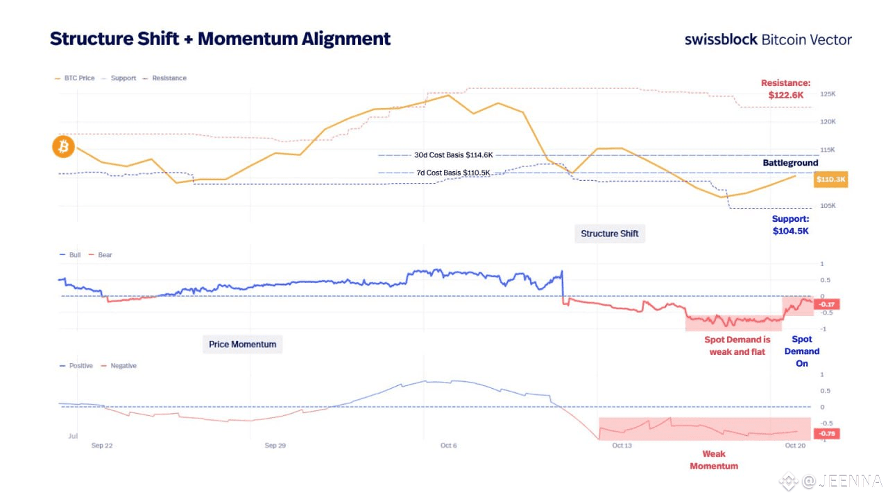 #Bitcoin recent price action is starting to show cracks as spot demand weakens, and according to Swissblock, that weakness could be the deciding factor in where $BTC heads next. Last week’s data showed that momentum remains negative and flat, while buying pressure on the spot side continues to fade. The growing tension between the #US and #China has also capped global market sentiment, adding more uncertainty to an already fragile crypto landscape.