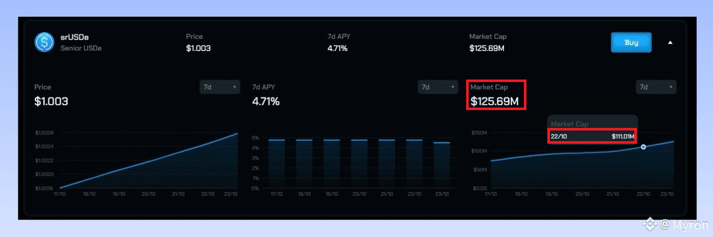 現在大概是與時間賽跑的概念,因為具有保障收益利率的srUSDe的淨流入量顯著高於需要為srUSDe收益兜底的jrUSDe,srUSDe供應量在一天的時間又多了14m,而jrUSDe依舊沒有增長。