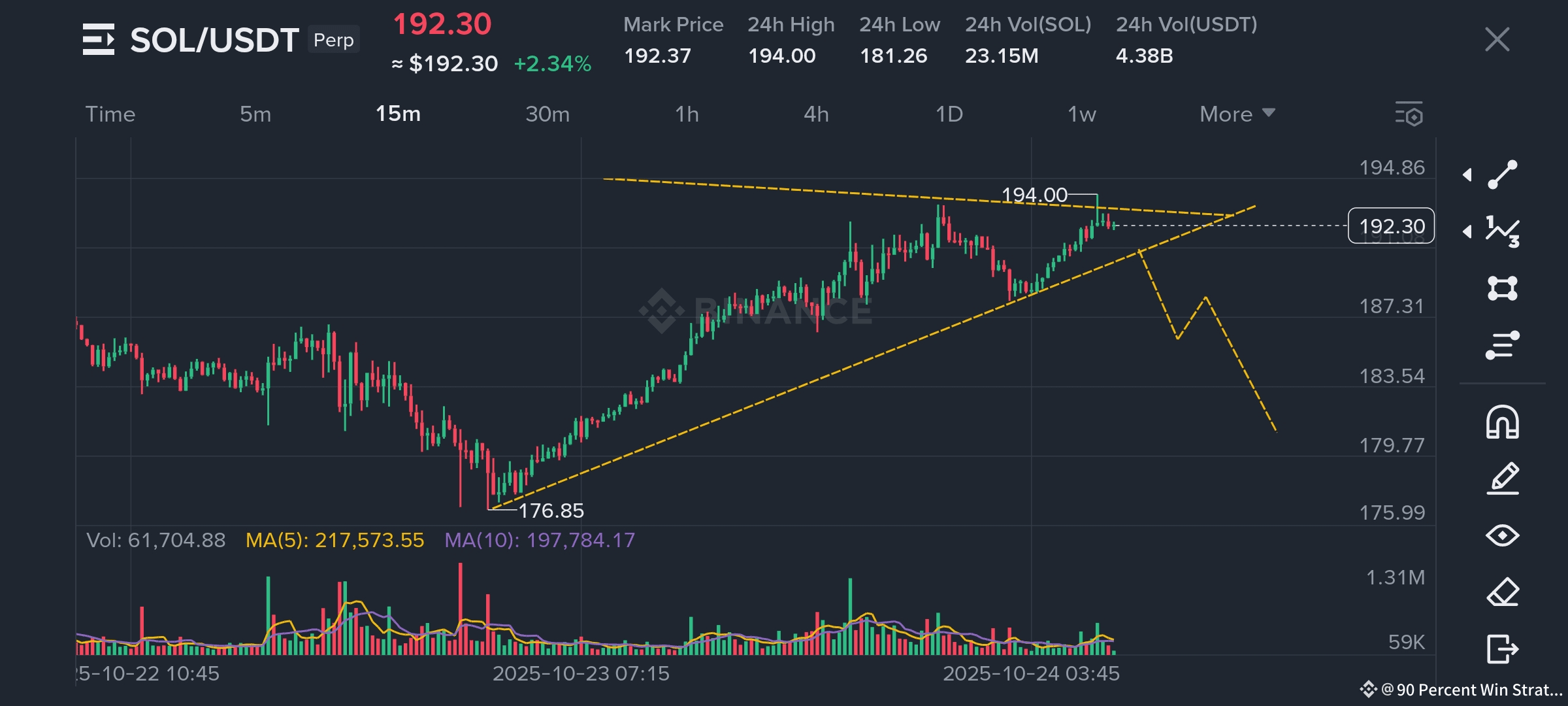 Price Action: After pumping to $190, sellers strongly defended the $192-$195 zone, leading to a new lower high above $190. A strong trendline break attempt failed.