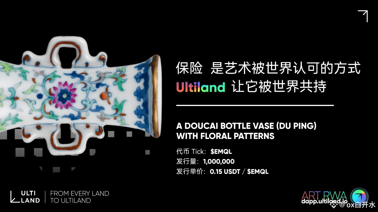 最近,RWA(现实世界资产)领域动作频频,但Ultiland推出的《帝王的信物》$EMQL一上线,就让人眼前一亮。这并非泛泛的链上实验,而是将乾隆御瓷实物上链的硬核艺术代币化项目,结合了AI估值和智能合约分红机制,真正把传统艺术品的价值注入流动性中。10月22日Genesis轮启动后,认购价固定为0.15U/枚,门槛低、逻辑清晰,值得深入探讨。本报告从数据和机制双维度切入,解析它如何在这一赛道中站稳脚跟。