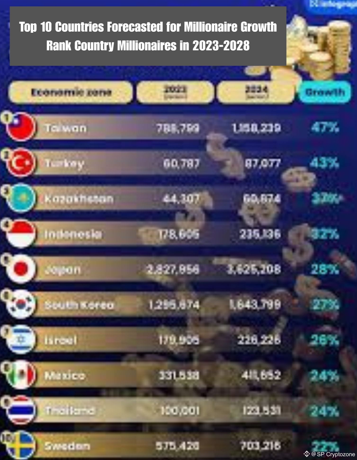 Projected to hit 1.16 million millionaires by 2028, Taiwan’s wealth surge is powered by its semiconductor dominance — especially giants like TSMC, which fuel the world’s AI, mobile, and automotive industries. A stable financial system further strengthens its upward momentum.