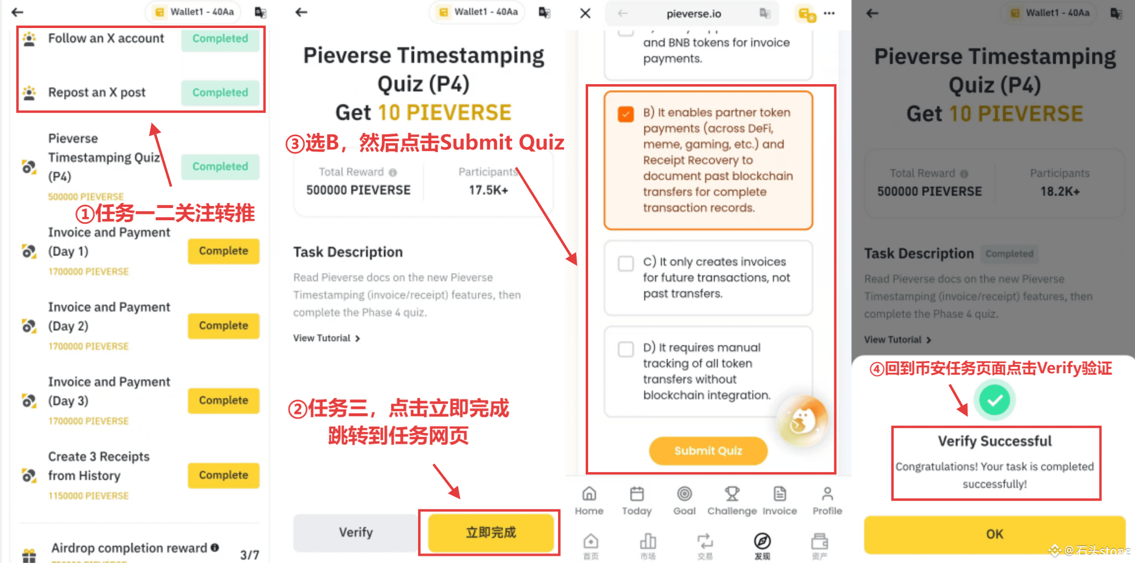 #币安钱包 @binancezh 币安 @binance 钱包Pieverse Booster活动今天刚开始,上一期教程因为出门耽搁了,在这里跟兄弟姐妹们说声抱歉,然后任务依然很火爆(币安出品,必属精品),所以大家抓紧做吧