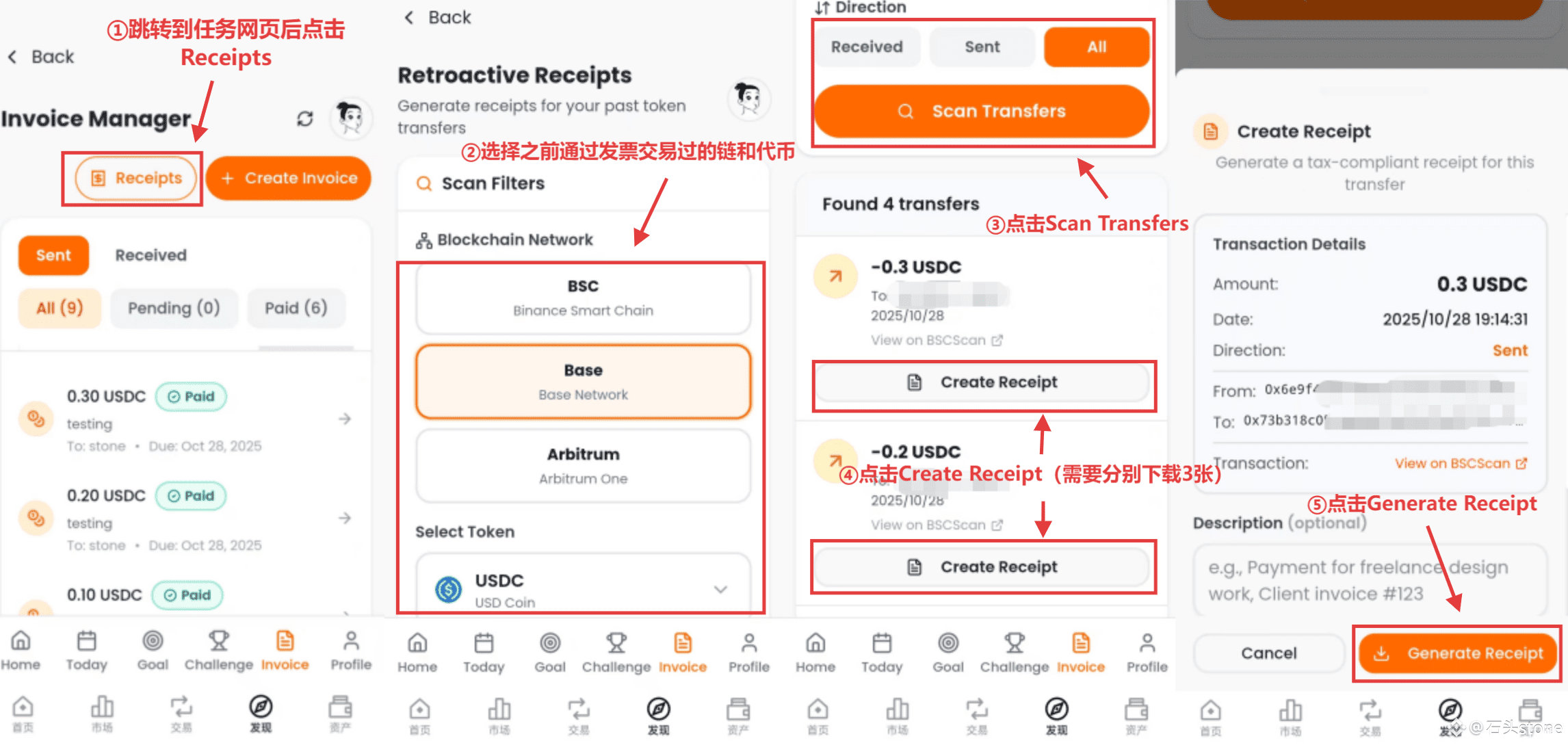 任务七:完成发票任务后生成并下载3张历史收据(做过上期任务的可以下载之前的BSC链收据)