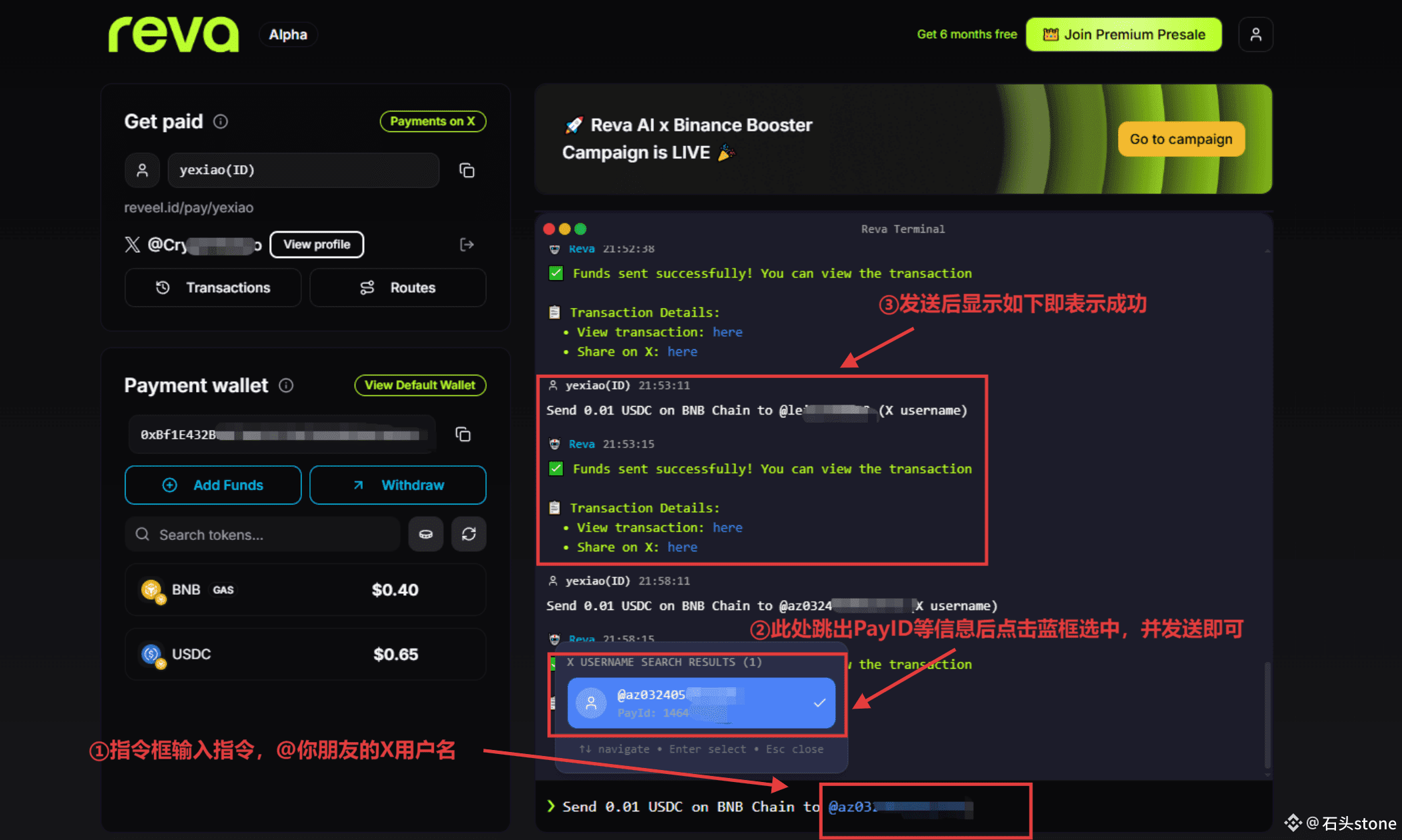 Hey @REVApay_ai send 20 USDC on BNB Chain to 你的bsc钱包地址