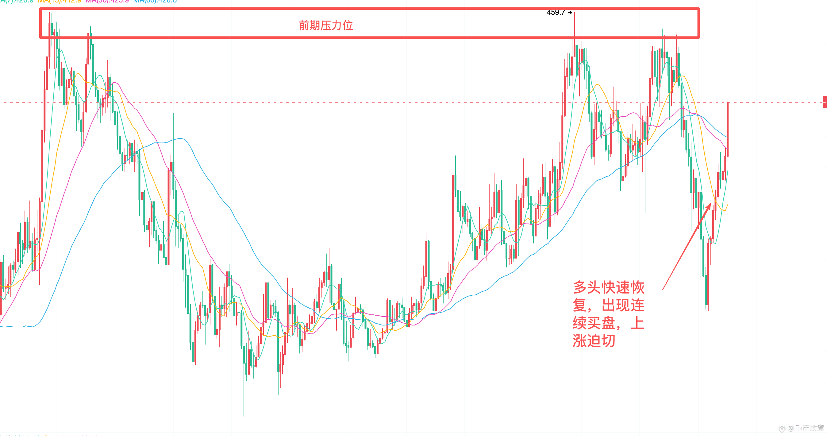 眼下,由于距离TAO12月12日的减半时间仅有40余天,提前炒作拉升需求很强,所以这个币勋章认为依然能够会有不错的表现。日线上面多头形态依然健在。MA多头引导处于初中期,未有大幅拉升,具备较大潜力。对于持仓现货的币友建议稳定持仓。由于上方470~500美金区间,连续有多个前期波峰位,存在着套牢盘,主力需要资金去承接卖压能突破这个阻力区。而后才能到达下一个压力位590附近,由此,短线价格到达450附近出现短回落,都是非常正常的。一旦突破压力区间,我们将很快看到550美金以上的TAO,届时将继续摩擦590附近的套牢盘奔向下一个目标。当前,勋章对于两个月内TAO上涨50%以上的预期不变。$TAO