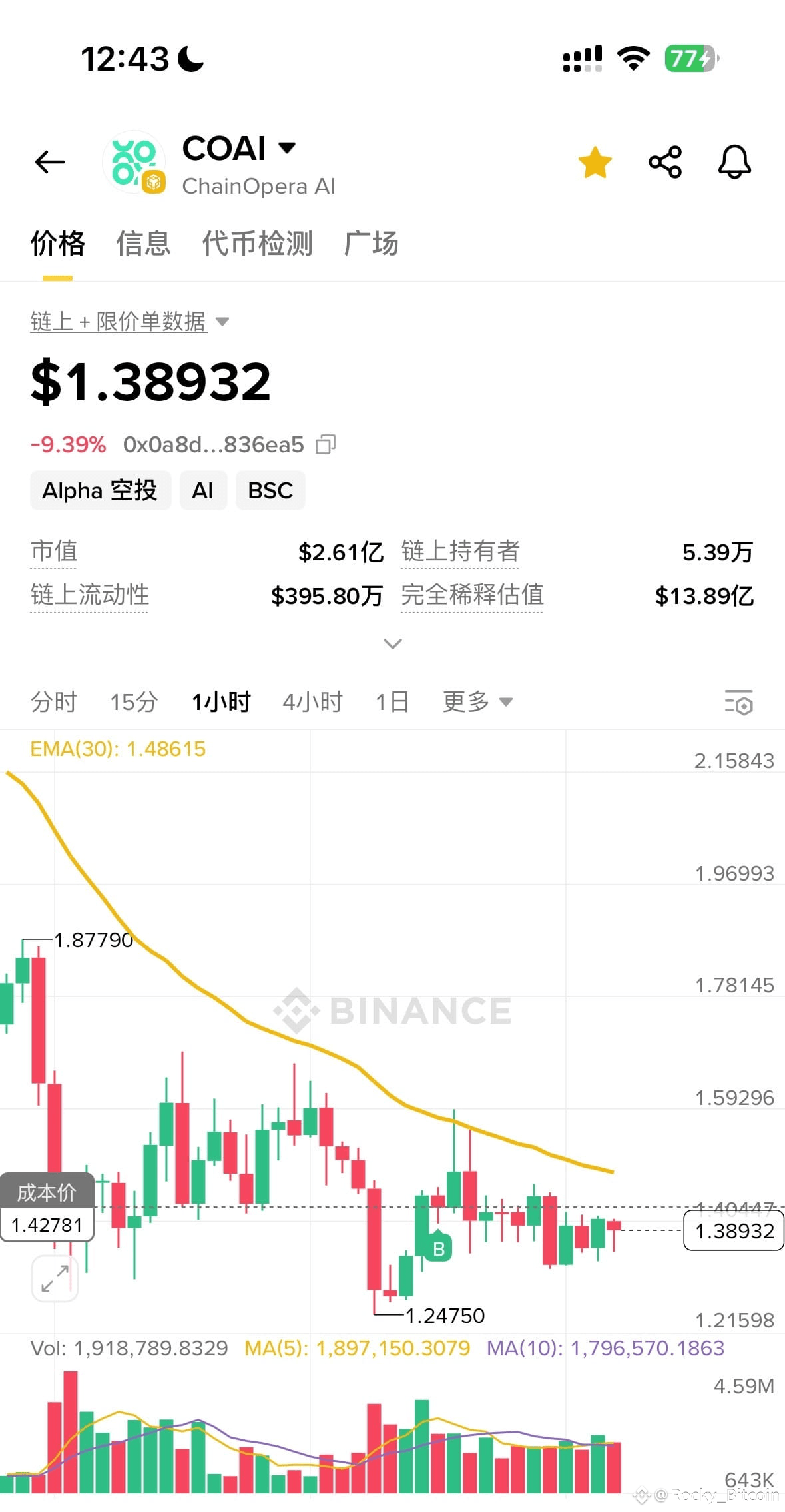 这次 $COAI 暴涨暴跌,本质是热钱炒作+情绪踩踏,并非项目基本面实质性变化。早期玩家获利了结,杠杆爆仓,散户恐慌割肉,把泡沫挤干净了。现在价格反而回到了一个让人相对安心的高度。