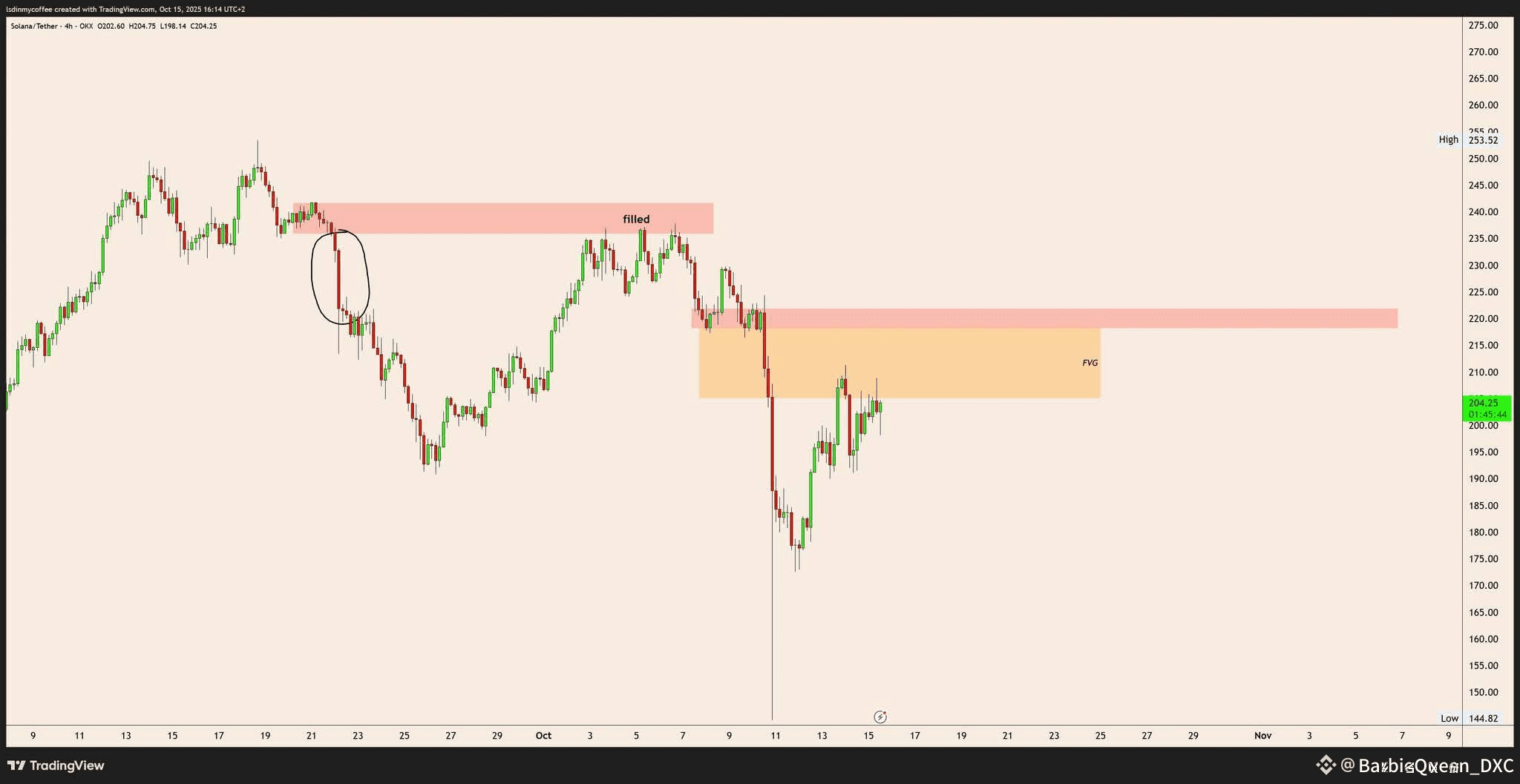 Another analyst’s contrasting view highlights something about ETH and SOL. While ETH has already filled its fair value gaps, signaling potential sideways movement, SOL still has an unfilled gap around $204–210. This positions SOL as a stronger short-term candidate.