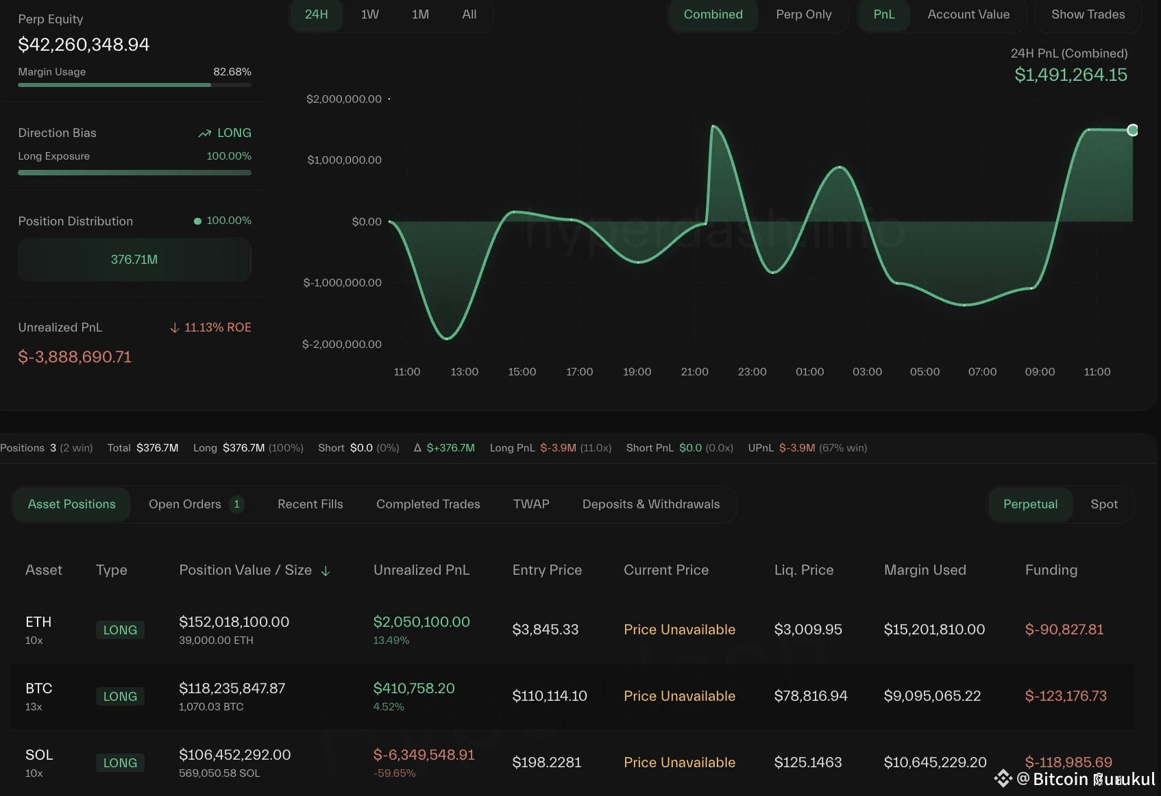 Look at the "Margin Used" numbers: over $15 million for ETH, $9 million for BTC, $10.6 million for SOL—totaling about $35 million in margin.
