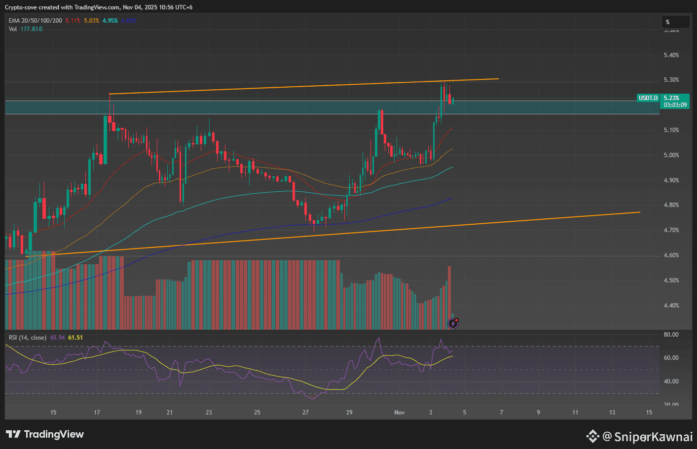 if you are not new to this market you know about USDT.D , USDT.D has negative correlation with crypto market . we can see USDT.D is near tom it's resistance and it is showing bullish sign . it can take pump more.20% . by this analysis we can also say xrp is bearish