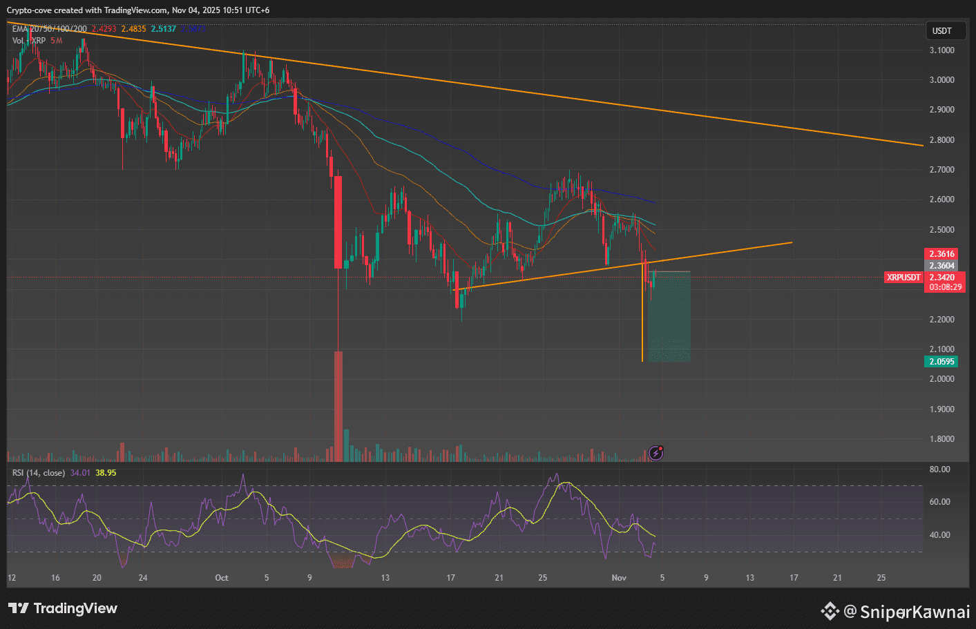 XRP has already break down it's support . it has target to go down 2.15 range . there is some correlation which makes me believe it will go short.