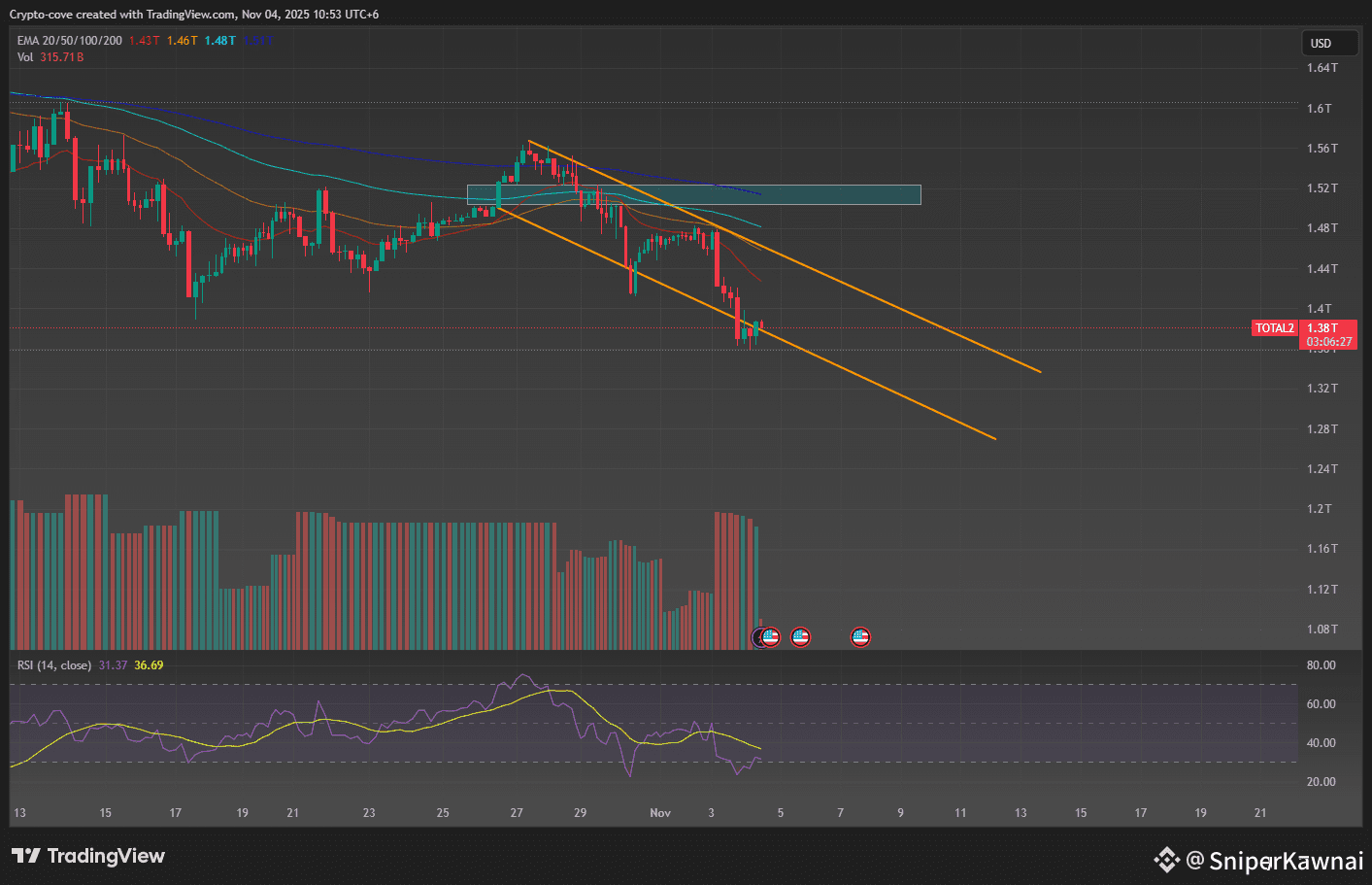 total2 is the index from which we can understand how xrp is going to perform against ETH . Right now xrp break out it's falling wedge support . it might go down more . but after that we can see a healthy upward movement .