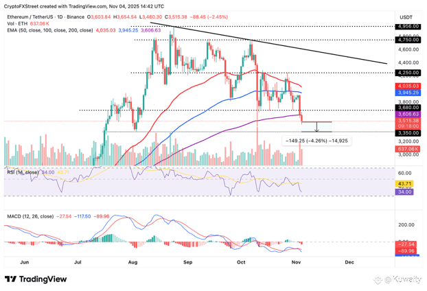 تواجه إيثريوم صعوبة في الحفاظ على مستوى 3500 دولار مع هيمنة مشاعر النفور من المخاطرة والخوف على سوق العملات المشفرة الأوسع.