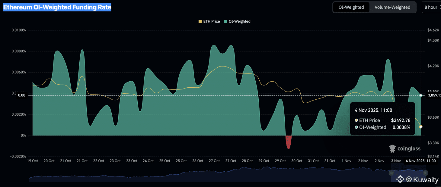 معدل التمويل الموزون بالفائدة المفتوحة لإيثريوم | المصدر: CoinGlass