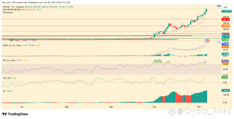 Based on its price action, the ideal cooldown zone appears near $360, aligning with a healthier market structure. This would be nearly 35% decline from ATH $538. $ZEC